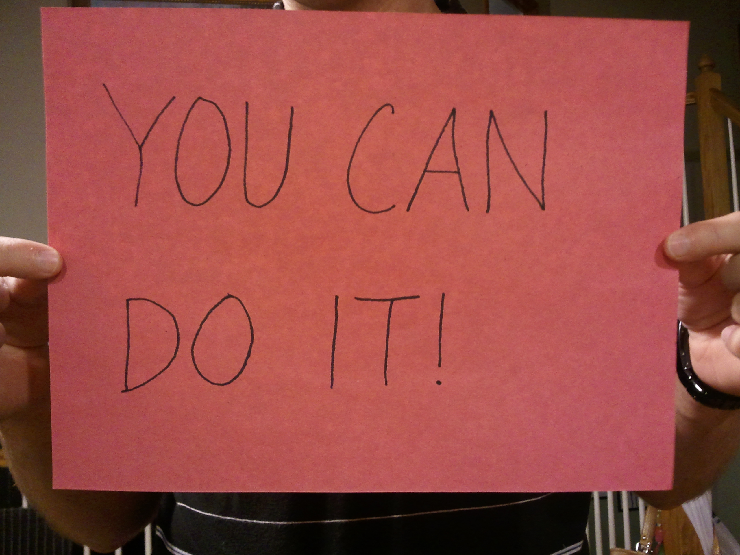 That’s when I decided it was time to get back on my regular running schedule. If Meghan can run a half marathon, I can run to my kid’s school and back. All I need is a little encouragement. I asked the hubs and my sons to help. Here are their signs: