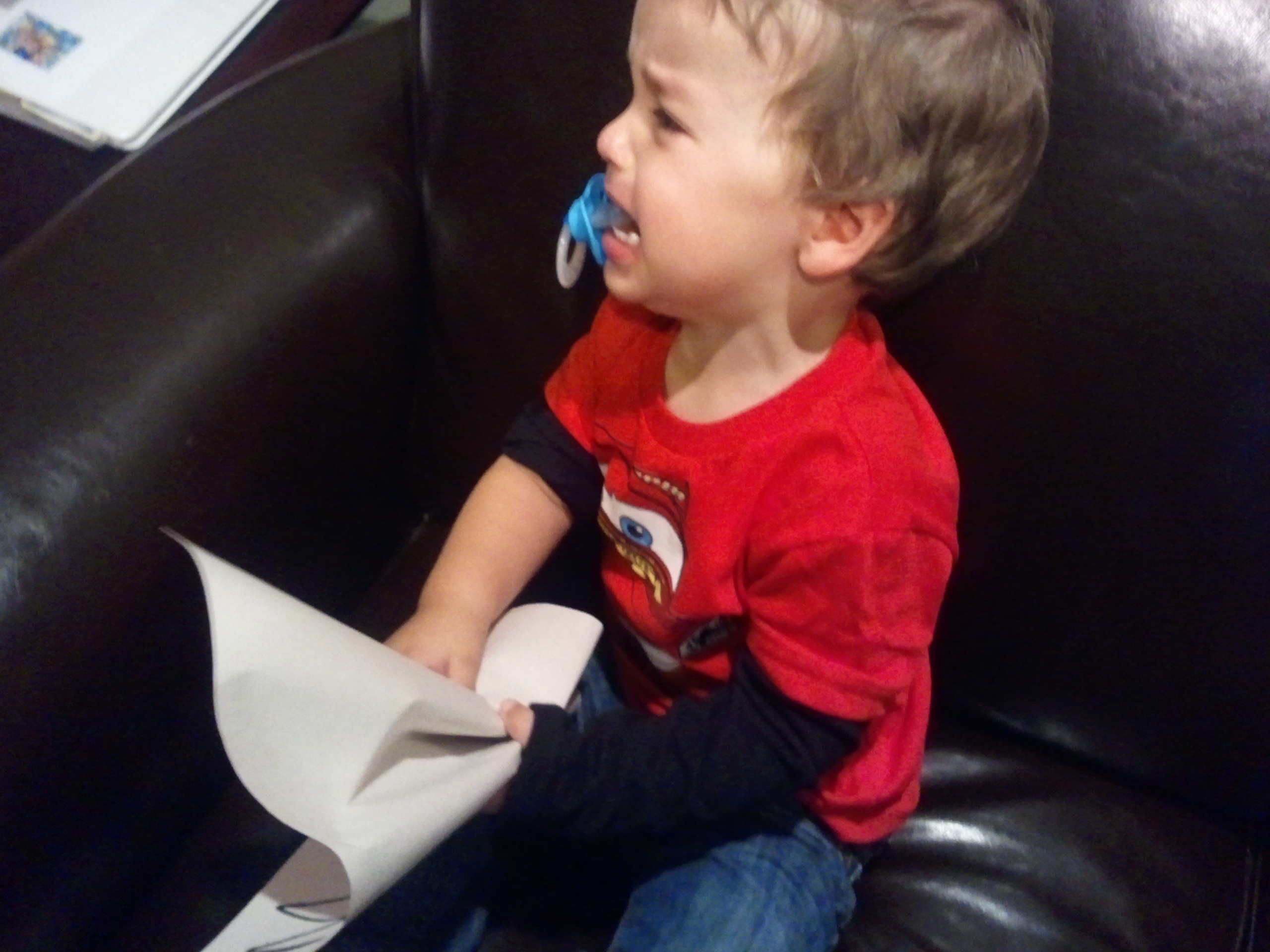 Following dinner Santa showed up and gave gifts to the kids. Each kid sat on his lap. They did not like that. There was crying. When Santa left, we exchanged gifts with each other and tried to keep the children from fighting over toys. When we failed at keeping the peace there was more crying. The kids eventually settled down and focused on their own toys…and that is when red wine was spilled on the couch.